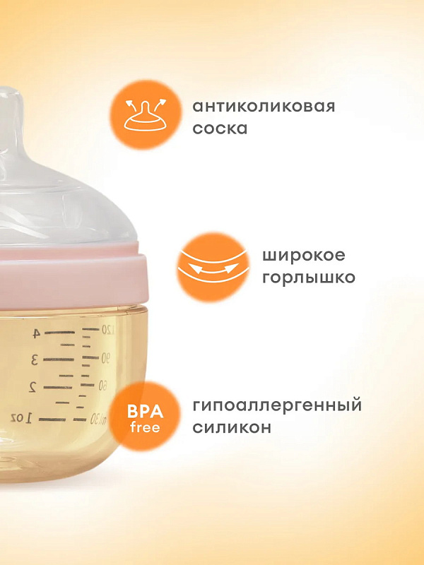 Антиколиковая бутылочка Mombella Wide Neck, широкая, 120 мл, пластиковая розоваяНет оценокХарактеристики