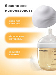 – Она состоит из колпачка, соски от 0+ месяцев, стопорного кольца и ёмкости для смеси объёмом 120 мл.