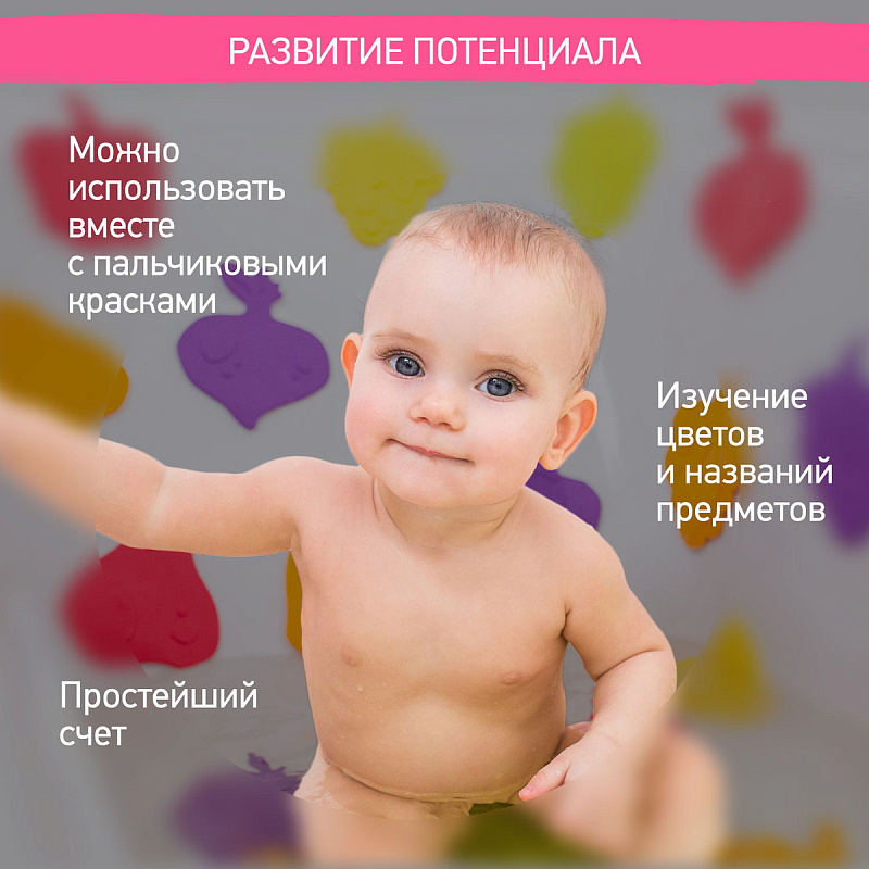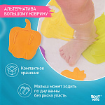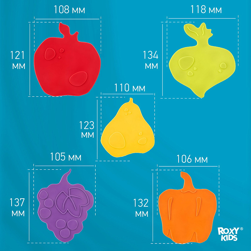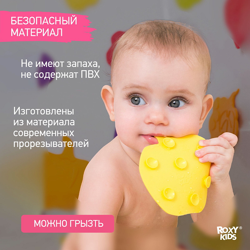 Мини-коврики для ванной от ROXY-KIDS произведены в России из современного и безопасного материала ТЭП. Этим коврикам можно найти множество применений. Мини-коврики станут отличной заменой большому коврику, который неудобно промывать и сушить. Также их используют как массажеры, потому что рельефная поверхность обеспечивает бережный массаж стоп и ладоней. Ребенок может грызть их, потому что они изготовлены из специального безопасного материала. Ими можно также украсить интерьер, налепив коврики на дно и стенки ванны или кафель, чтобы не только обеспечить удобство, но и расставить яркие цветовые акценты. Кроме того, эти мини-коврики абсолютно не пахнут, потому что не содержат ПВХ. Для ухода их достаточно просто периодически промывать с мылом, полоскать и хорошо сушить. Они легко и надежно крепятся с помощью присосок на любую гладкую поверхность, при этом не оставляют следов. В ассортименте есть несколько наборов ковриков.