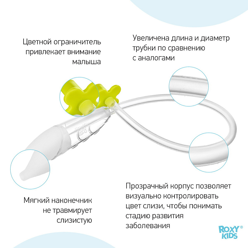 Аспиратор назальный Roxy-Kids с мягким наконечником в мешочке RND-27-116 зелёный1 оценкаХарактеристики
