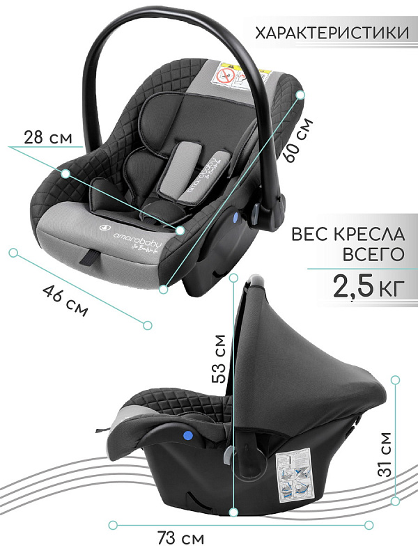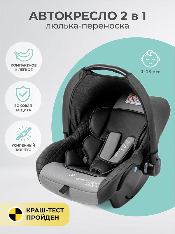Автокресло переноска Baby comfort AMAROBABY устанавливается против хода движения и крепится внутренними ремнями безопасности автокресла. Вес 2,5 кг.