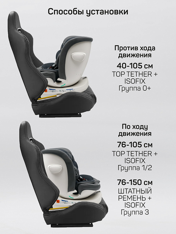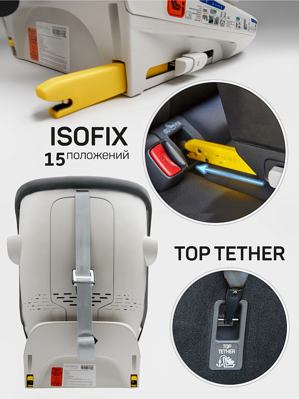 Вращающаяся на 360° база облегчает посадку и высадку ребенка, а также позволяет быстро менять положение кресла. Система крепления ISOFIX и Top Tether обеспечивает надежную и стабильную установку в автомобиле.