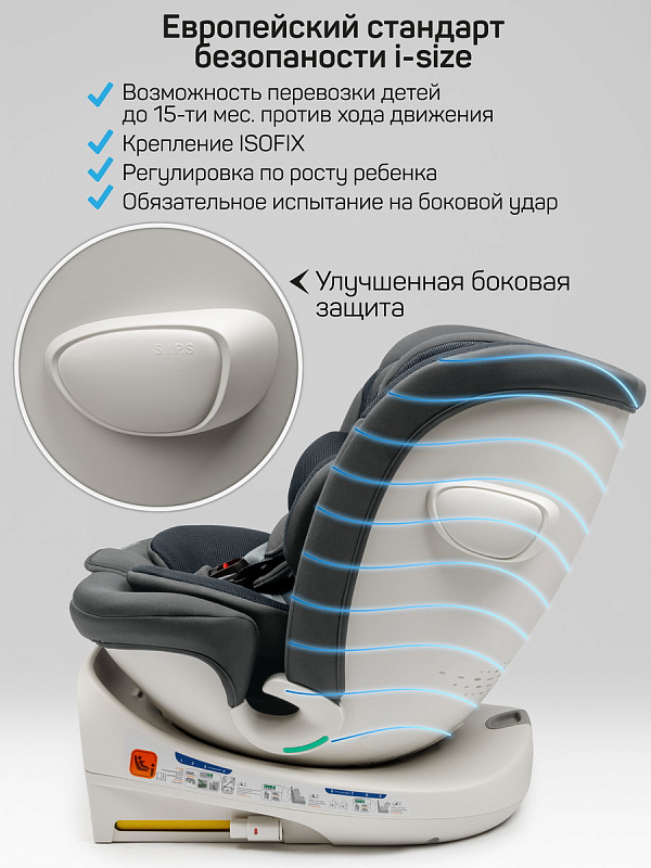 Универсальное автокресло имеет усиленную систему боковой защиты (SIP) и гарантирует максимальную безопасность при боковых ударах.