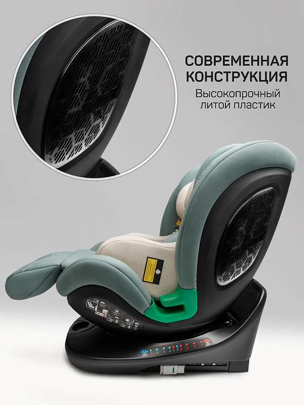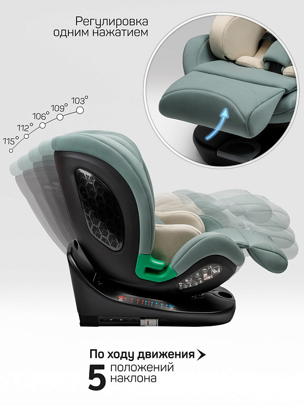 Важной особенностью является вращающийся механизм кресла на 360 градусов, который значительно облегчает посадку и высадку ребенка. Наклон спинки регулируется, позволяя выбрать оптимальное положение для сна или отдыха малыша.