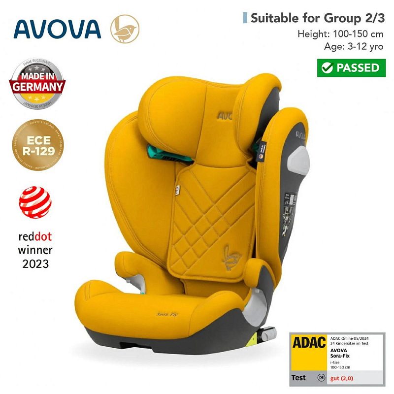 Sora-Fix соответствует последнему европейскому стандарту безопасности UN ECE R-129, что является гарантией высокого уровня защиты вашего ребенка в случае аварии. Этот стандарт подразумевает строгие испытания, проверяющие кресло на стойкость к различным видам ударов и нагрузок. Именно поэтому Avova Sora Fix обеспечивает наивысшую степень защиты во время поездок, минимизируя риски получения травм при возможных столкновениях.