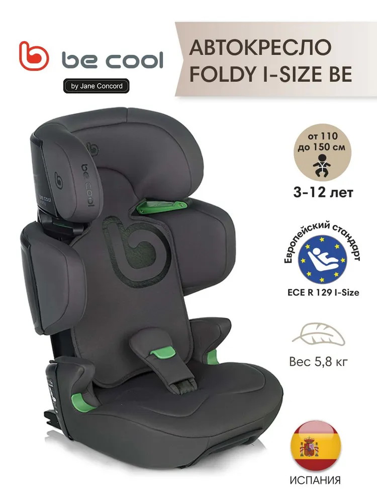 Автокресло FOLDY I-Size от бренда BE COOL – безопасное и компактное автокресло от известного испанского бренда. Сертифицировано по стандарту R129 i-Size от 100 до 150 см (примерно от 3 до 12 лет). Оно адаптируется к потребностям ребенка на всех этапах его роста, благодаря независимым регулировкам сиденья по высоте и ширине. Автокресло легко складывается и оснащено ручкой для переноски.
