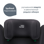 Подголовник разработан специально для подросших детей, его можно легко установить в необходимое положение. Конструкция обеспечивает улучшенную защиту от бокового удара и увеличенный радиус обзора для ребенка. Удобные отметки на задней части подголовника помогают родителям правильно подобрать нужную высоту.