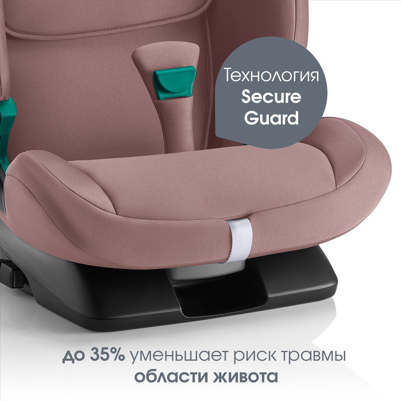 Технология SecureGuard помогает защитить уязвимую область живота вашего ребенка с помощью дополнительной четвертой точки крепления в 3-точечном ремне безопасности. Она удерживает поясной ремень в оптимальном положении (по тазовыми костям) и способствует снижению давления на область живота при лобовом столкновении до 35 %*, при этом движения ребенка во время поездки не скованы.