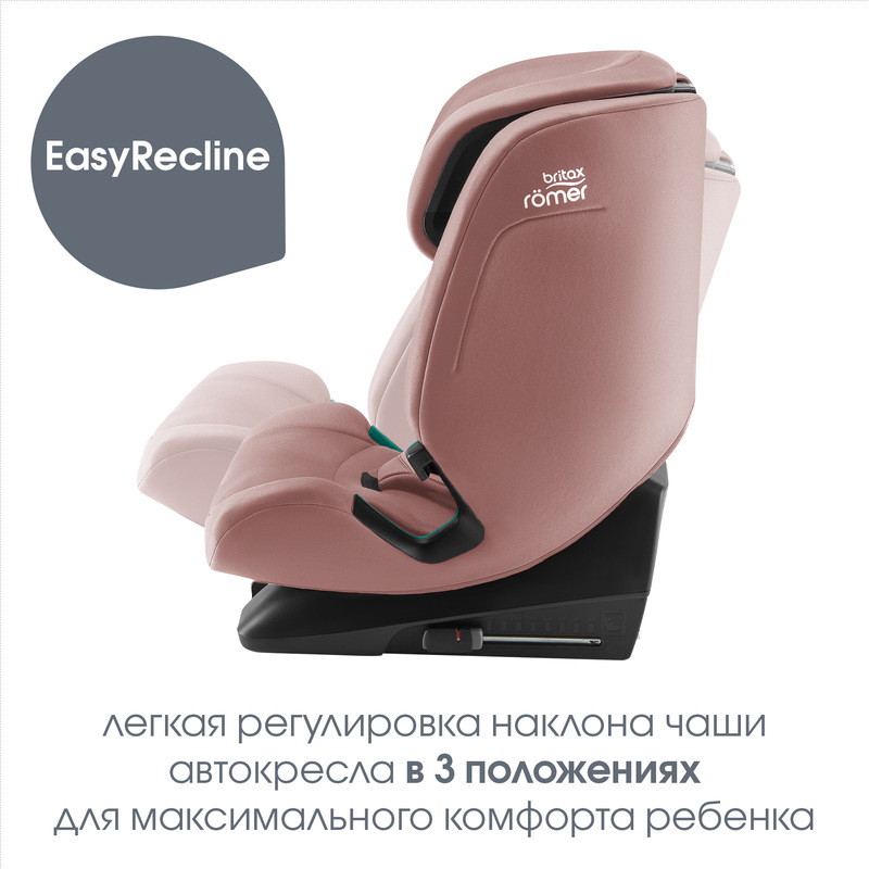 Система EasyRecline подходит для детей всех возрастов и позволяет отрегулировать положение наклона сиденья для большего комфорта. При этом нет необходимости регулировать якорный ремень, а ребенок может оставаться в кресле, что очень удобно.