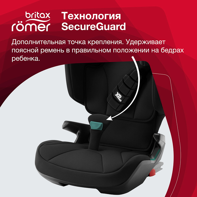 Также автокресло оснащено системами безопасности XP-PAD и SICT. Кроме того, правильность расположения диагонального ремня безопасности под контролем у специально предусмотренной скобы крепления ремня безопасности.