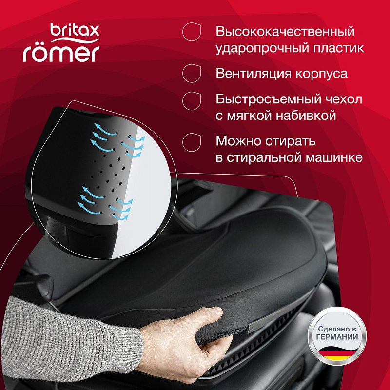 Высококачественные ткани изящно подчеркнуты мембранными сетчатыми вставками, которые придают автокреслам дополнительный комфорт и запоминающийся стиль от Britax Roemer.