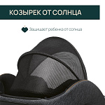 Кресло имеет 5 положений наклона при установке как против хода, так и по ходу движения. Для дополнительного комфорта предусмотрен встроенный воздухопроницаемый выдвижной козырек, защищающий от ультрафиолета.