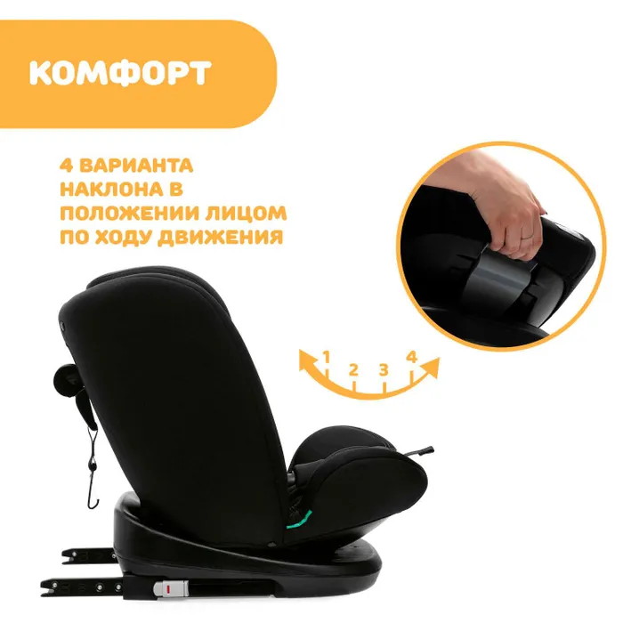 Мягкий вкладыш, входящий в комплект, обеспечивает малышу дополнительный комфорт и используется ребенком ростом от 76 см (с 15 месяцев) до 87 см. Наклон автокресла регулируется одной рукой. 4 положения наклона гарантируют правильную позицию для безопасности, отдыха и общения.