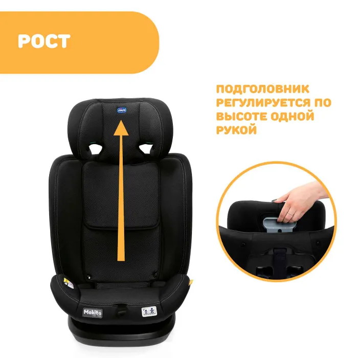 Chicco Автокресло Mokita I-Size Classic сертифицировано по самому последнему стандарту ECE R129/03 и предназначено для детей ростом от 76 до 150 см (15 месяцев – 12 лет примерно). Подголовник и 5-точечные ремни регулируются одновременно, одной рукой и следуют за ростом ребенка.