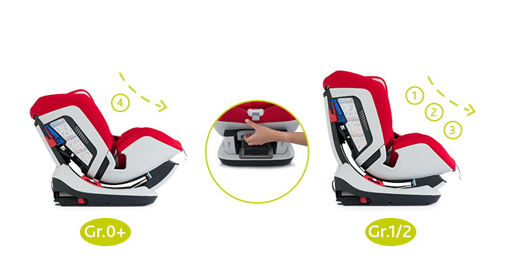 - 4 положения кресла позволяют обеспечить ребенку идеальную позу для передвижения в автомобиле;
