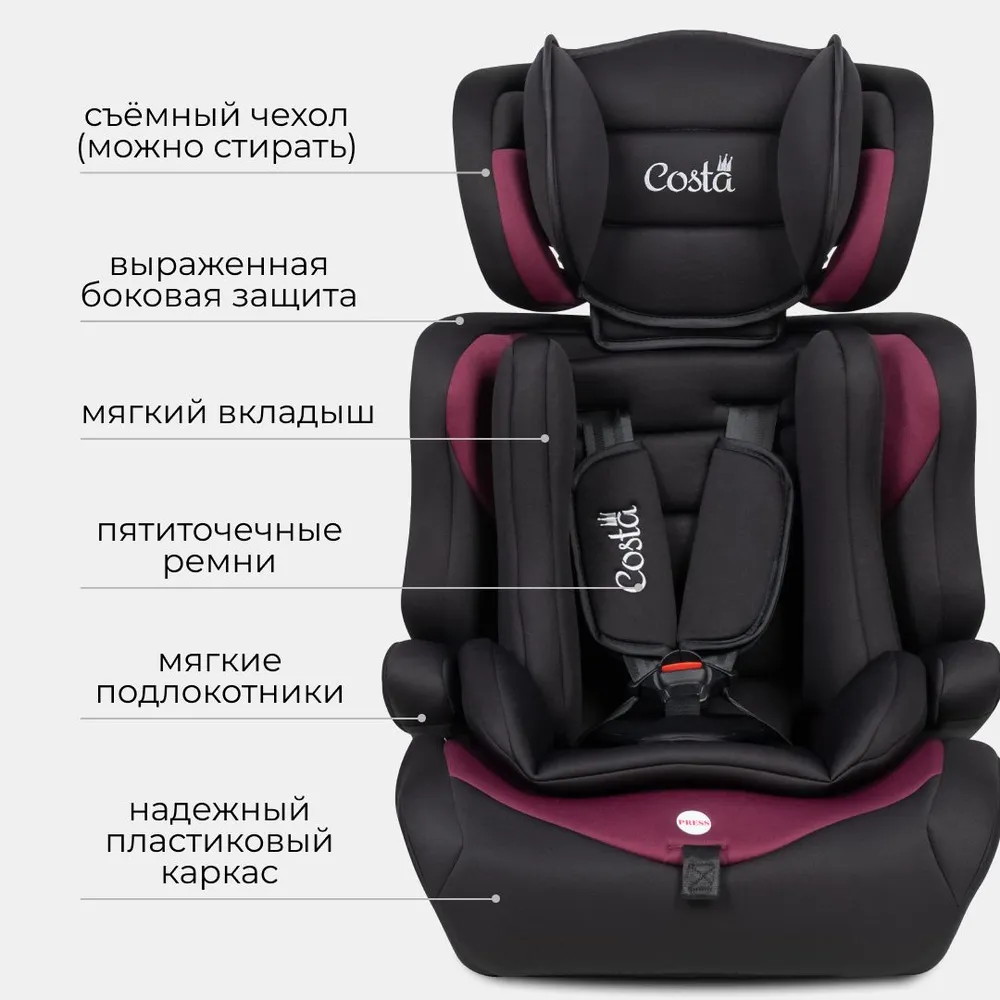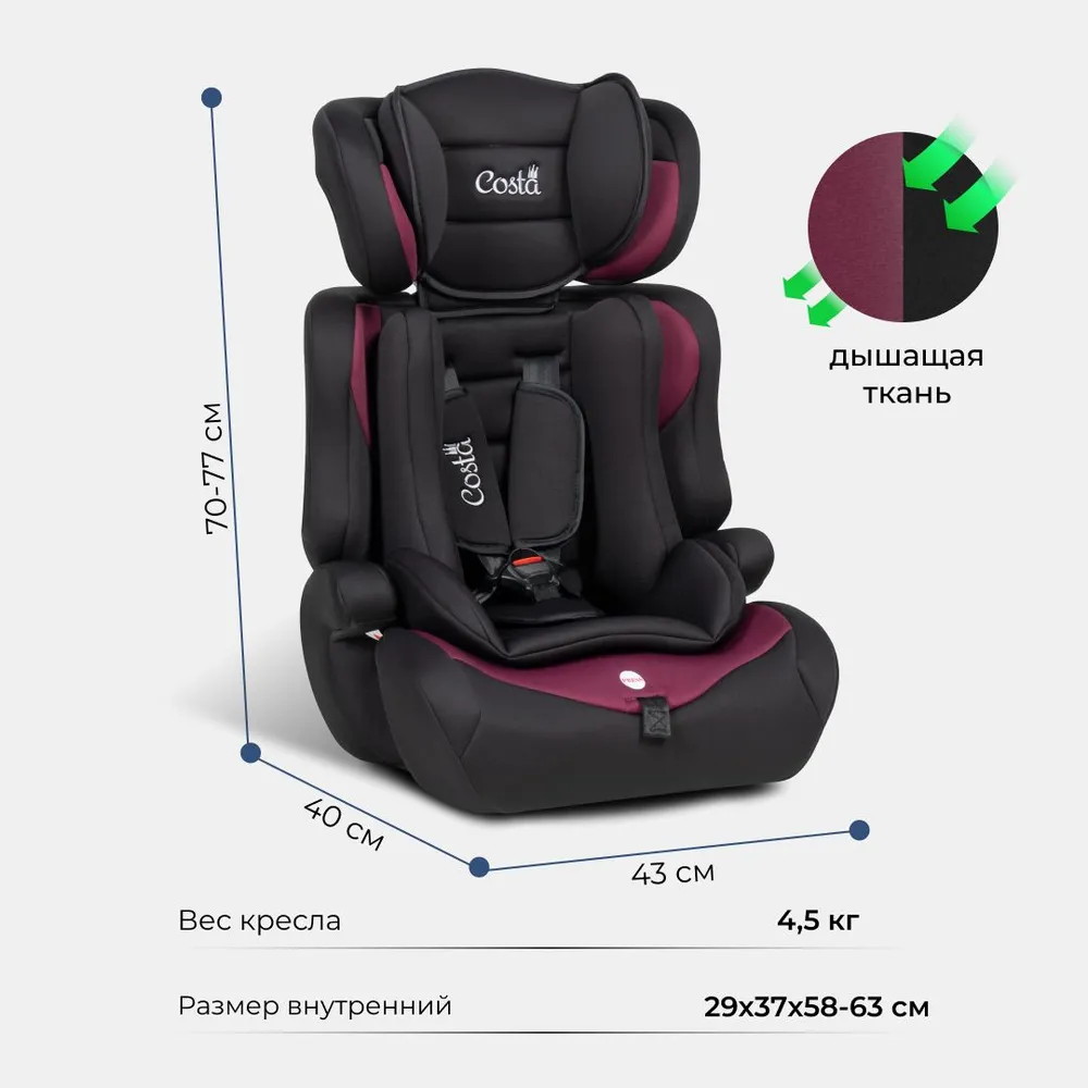 Детское автокресло Costa HC-01 - это удобное, безопасное и стильное кресло для детей возрастом от 1 до 12 лет весом от 9 до 36 килограмм.