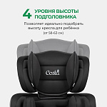 Автокресло имеет пятиточечные ремни безопасности с мягкими накладками и регулировкой высоты и глубины (адаптируются под рост ребенка и зимнюю/летнюю одежду), а также мягкий внутренний вкладыш для комфортного сидения. Подголовник имеет 4 уровня регулировки высоты и мягкий съемный вкладыш, который обеспечивает дополнительную поддержку головы.