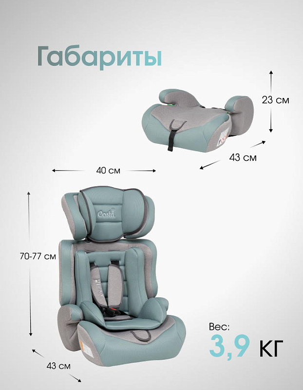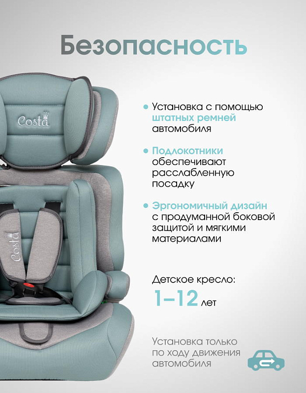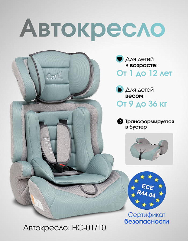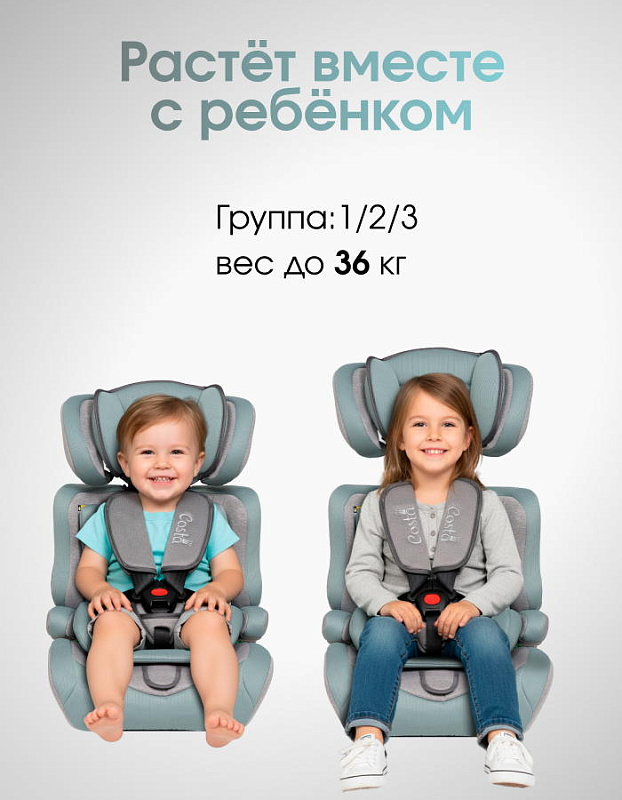 Детское автокресло Costa HC-01 - это удобное, безопасное и стильное кресло для детей возрастом от 1 до 12 лет весом от 9 до 36 килограмм.