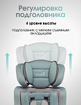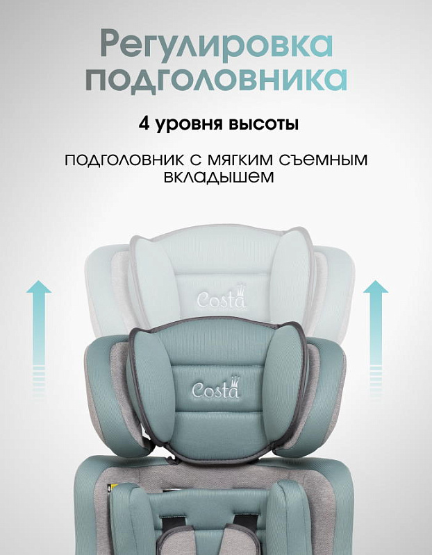- регулируемый по высоте подголовник (4 уровня высоты) с мягким съемным вкладышем