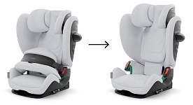 Чтобы изменить конфигурацию Pallas на конфигурацию с 3-точечным ремнем безопасности, вам нужно только снять защитный экран. Пожалуйста, следуйте инструкциям в руководстве пользователя о том, как снять защитный экран и изменить конфигурацию. Затем ребенок фиксируется 3-точечным ремнем безопасности. Вы можете переоборудовать Pallas после того, как ваш ребенок превысит рост 100 см. Однако это не обязательно, и вы можете продолжать использовать автокресло Pallas с защитным экраном, пока ваш ребенок не достигнет роста 105 см. Однако обязательно отсоедините защитный экран, как только ребенок достигнет веса 21 кг.
