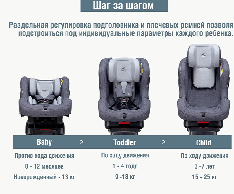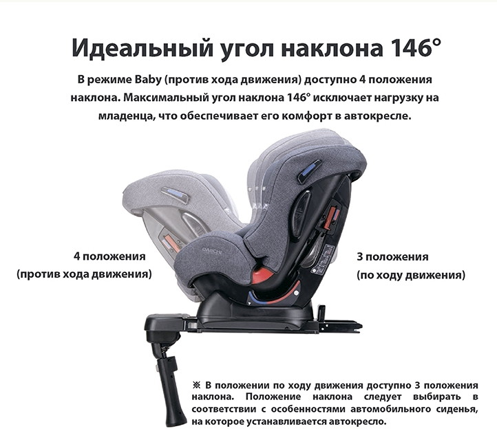 - Режим baby: Установка против хода движения (вес ребенка 0 - 13 кг; возраст от 0 до 12 - 15 мес)