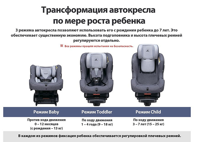 - Режим toddler: Установка по ходу движения (вес ребенка 9 - 18 кг; возраст 9 мес - 4 года)