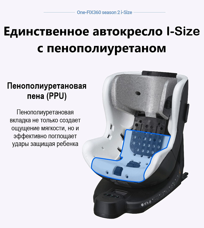 - Единственное автокресло с сертификацией I-Size с полиуретановой пеной