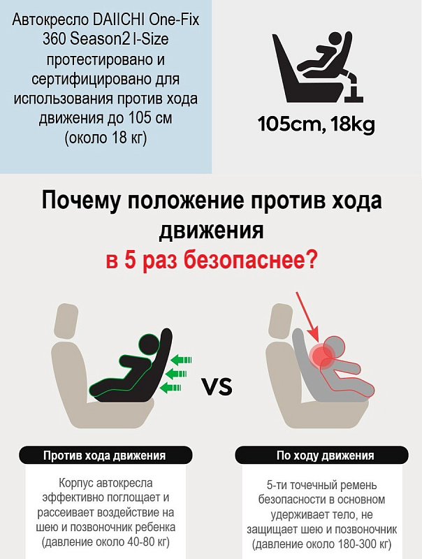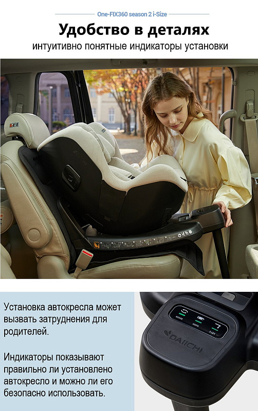 Таким образом, автокресло DAIICHI™ One-FIX 360 Season2 i-Size (DA-D5100) представляет собой сочетание комфорта, безопасности и удобства, идеально подходящее для защиты вашего малыша в дороге.