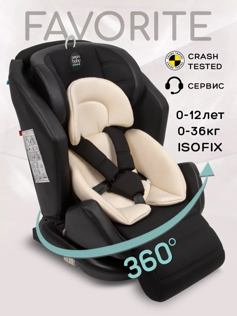 Автокресло детское AmaroBaby Favorite ISOFIX, 0+/1/2/3 чёрный/бежевый