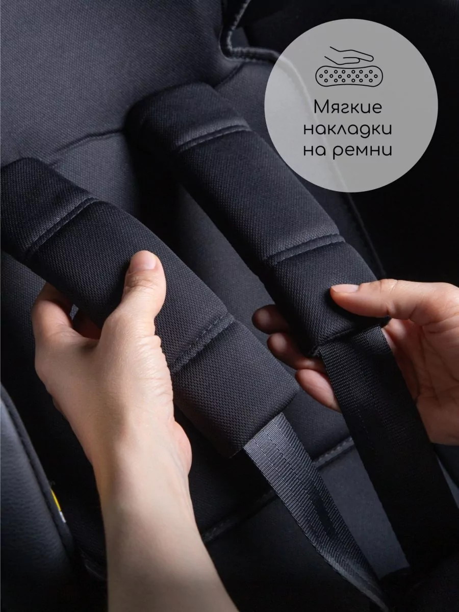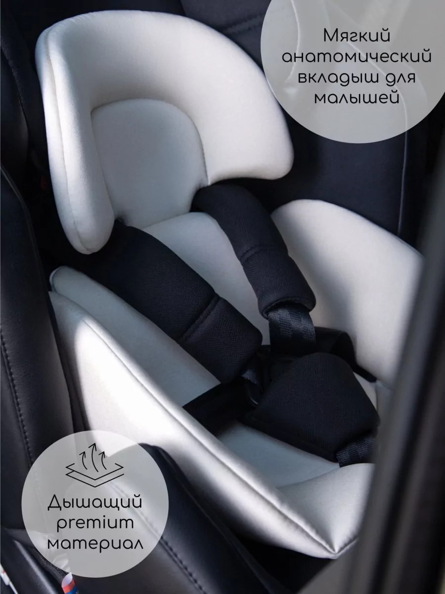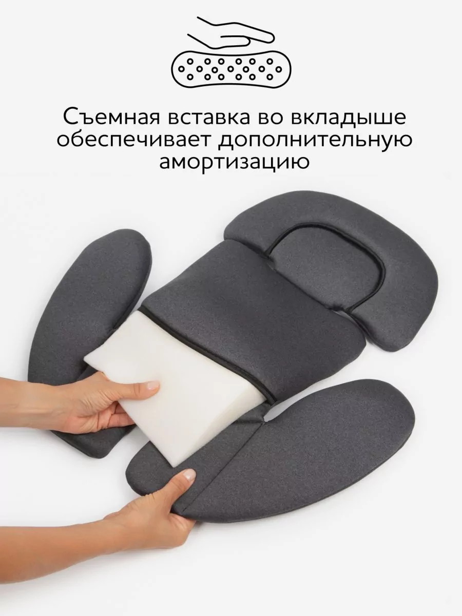 Ортопедическая форма сиденья, анатомический вкладыш для новорожденных и дополнительные защитные накладки на ремнях безопасности обеспечивают максимальный комфорт.