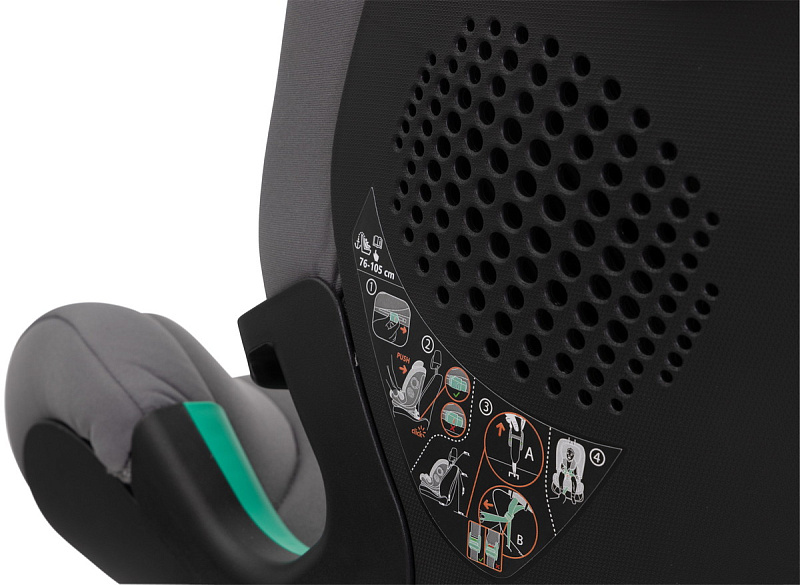 Установка с помощью креплений Isofix и верхнего якорного ремня (Top Tether) для детей ростом от 76 до 105 см. Начиная со 100 см (примерно с 3 лет) кресло устанавливается с использованием ремня безопасности автомобиля (Isofix - опционально). Сертифицировано для установки также без креплений Isofix.
