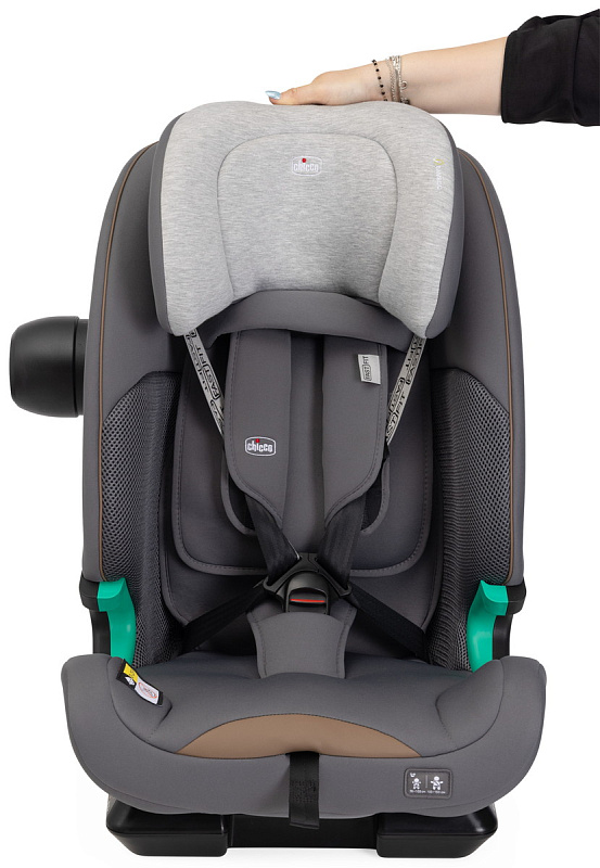 Подголовник регулируется по высоте в соответствии с ростом ребенка до 150 см.