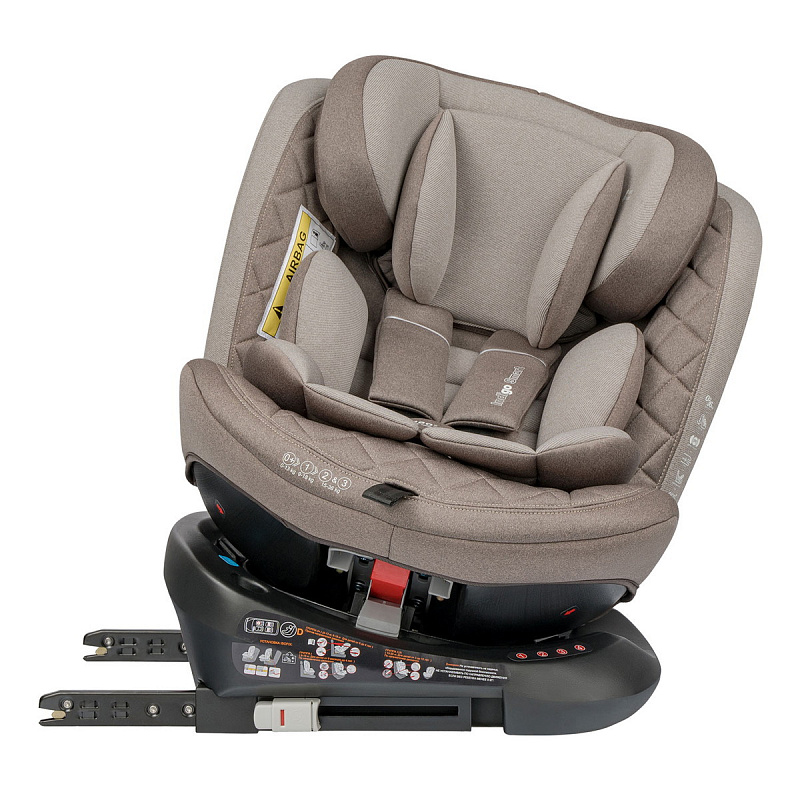 Поворотная база на 360 градусов: Инновационная конструкция позволяет легко поворачивать кресло в любом направлении, обеспечивая удобство как при посадке, так и при высадке ребенка. Это особенно важно для маленьких детей, когда им нужно удобно поместиться в кресле.