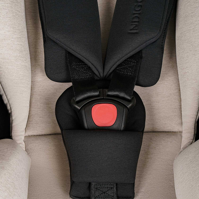 Трёхточечные ремни безопасности с мягкими, съёмными наплечниками на кнопках.