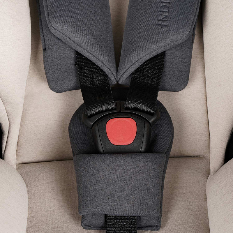 Трёхточечные ремни безопасности с мягкими, съёмными наплечниками на кнопках.