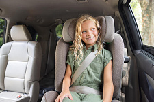 Подголовник GrowTogether™ и система ремней регулируются одной рукой и не требуют перезаправки ремней.