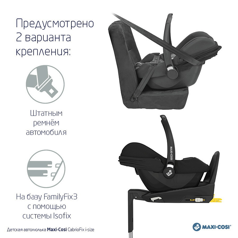 - Возможна установка с помощью баз CabrioFix i-Size и Familyfix3