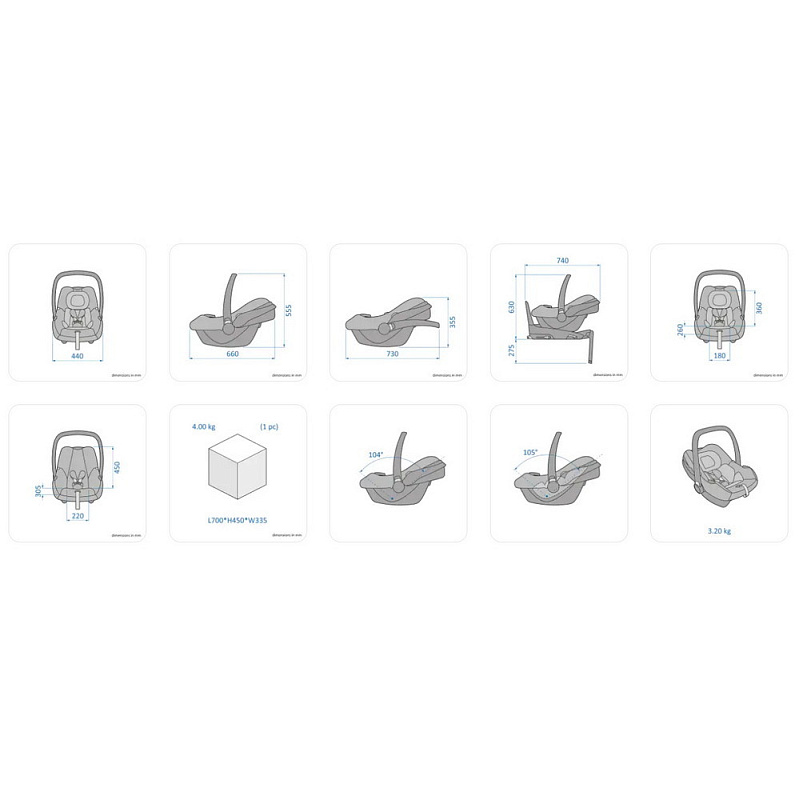 Размеры автолюльки: 73 х 44 х 36 см
