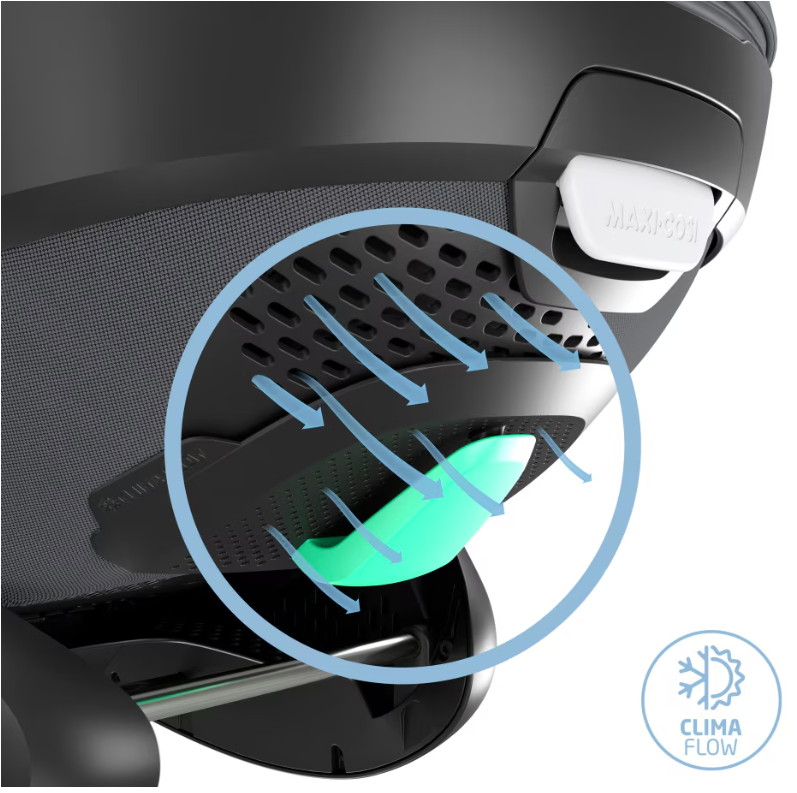 Pebble 360 Pro оснащено дышащими панелями ClimaFlow, которые обеспечивают оптимальную циркуляцию воздуха и гарантируют, что у вашего ребенка всегда будет правильная температура.