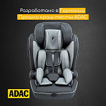 Автокресло обеспечит необходимую защиту ребёнка во время поездки на автомобиле. Обладает регулируемым подголовником с дополнительной вставкой и удобными подлокотниками. Два варианта установки.