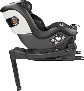 Кресло, закрепленное на поворотной базе, позволяет легко посадить и высадить ребенка, так как сиденье может поворачиваться на 90 градусов.