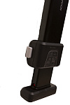 - Выдвижная нога-упор в пол, с индикатором правильной установки. Заменяет собой якорь как третья точка опоры. Благодаря этому кресло свободно вращается. Ногу можно сложить и убрать под сидение в специальный отсек (при этом вращение будет недоступно)