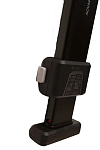 - Выдвижная нога-упор в пол, с индикатором правильной установки. Заменяет собой якорь как третья точка опоры. Благодаря этому кресло свободно вращается. Ногу можно сложить и убрать под сидение в специальный отсек (при этом вращение будет недоступно)