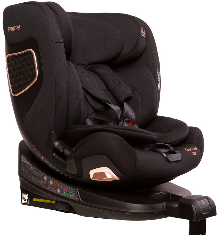 Peppy Genius 0-36 кг (I-Size 40-150 см) –премиальное автокресло в линейке Peppy. Модель подходит для детей с рождения до 12 лет и имеет новейший сертификат безопасности R129. Вместительное посадочное место с мягкими матрасиками и вставками из латекса обеспечит ребенку удобство в пути.