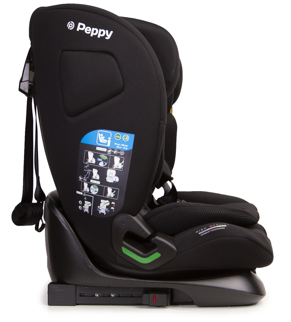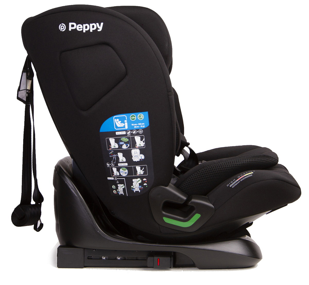 Peppy Lambo 9-36 кг (I-Size 76-150 см) –автокресло для ребенка от 9 кг, и ростом от 76 см, что примерно соответствует 9-10 месяцев. Модель получила сертификат безопасности I-Size (R-129), что свидетельствует о прохождении краш-тестов, включая боковой удар!