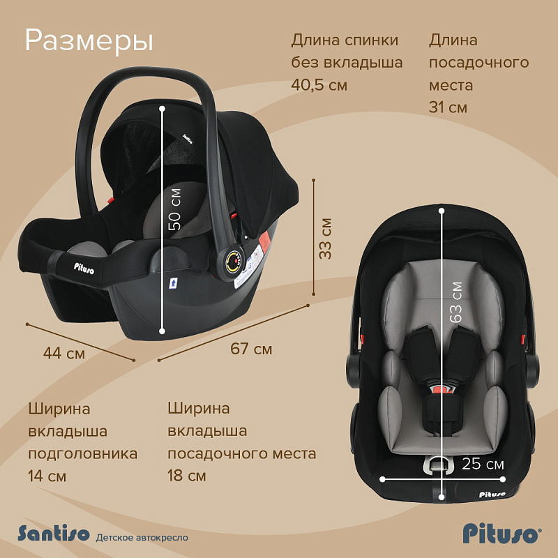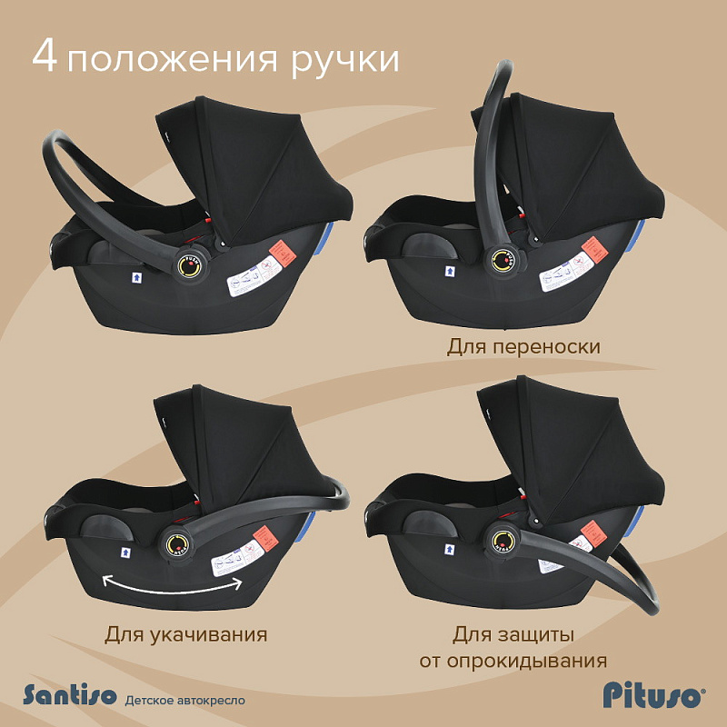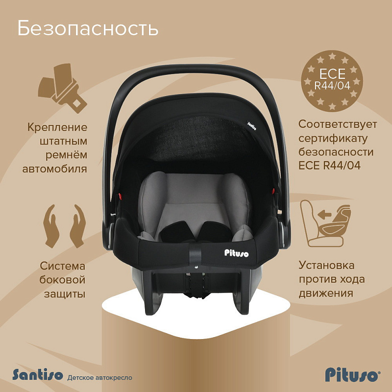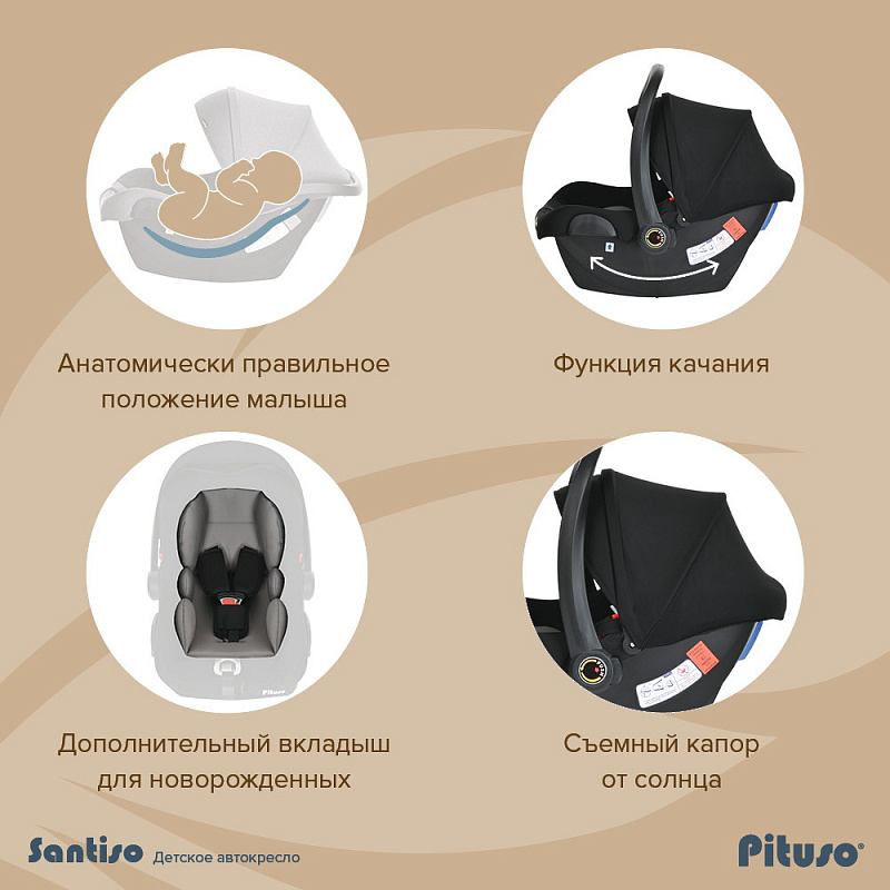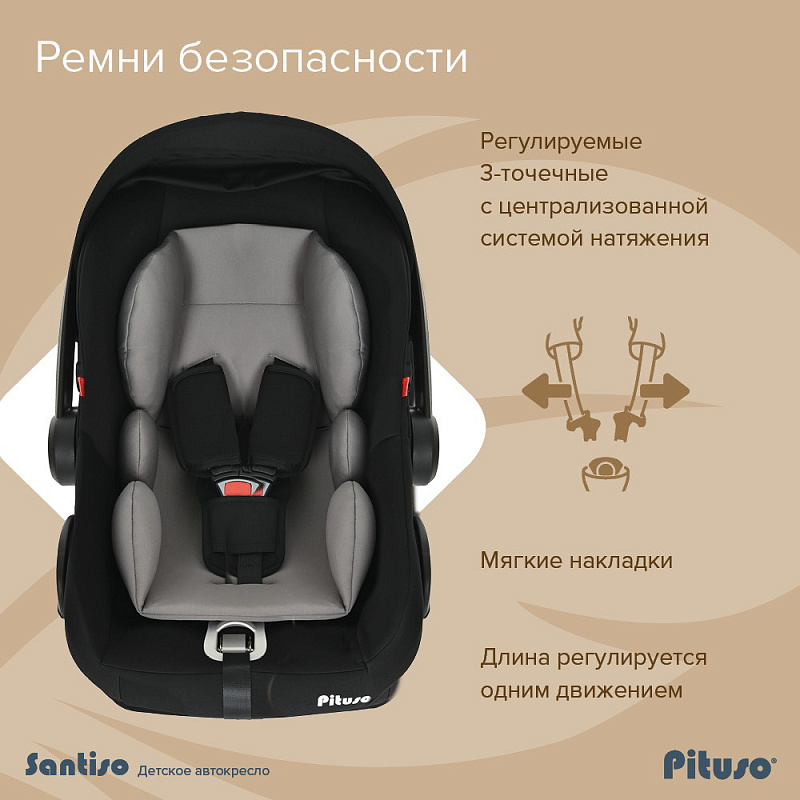 Детское комфортное автокресло Pituso Santiso с уютной глубокой чашей. Предназначено для пассажиров с рождения примерно до года.