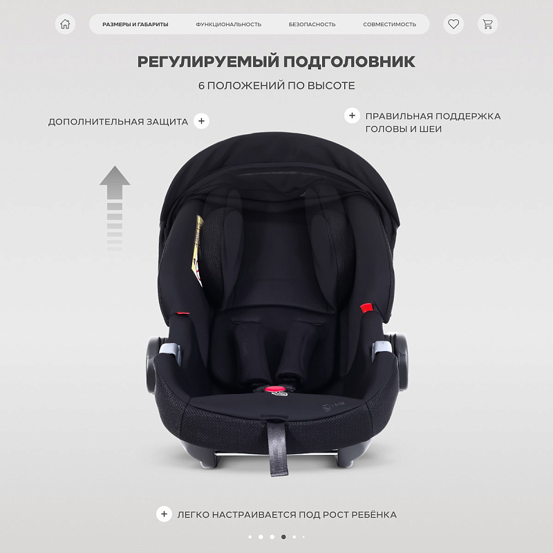 Детское автокресло RANT CARRY PRO (40-87 см) покорит вас: возможностью установки на базу ISOFIX (приобретается отдельно); возможностью установки на каркас коляски + адаптеры (модели Zoom, Tilda, Nexus); инновационной формой капора; регулировкой подголовника по росту; мягкими комфортными вкладышами, вынимаемыми по мере роста крохи; тактильно приятными гипоаллергенными чехлами из премиум-ткани.