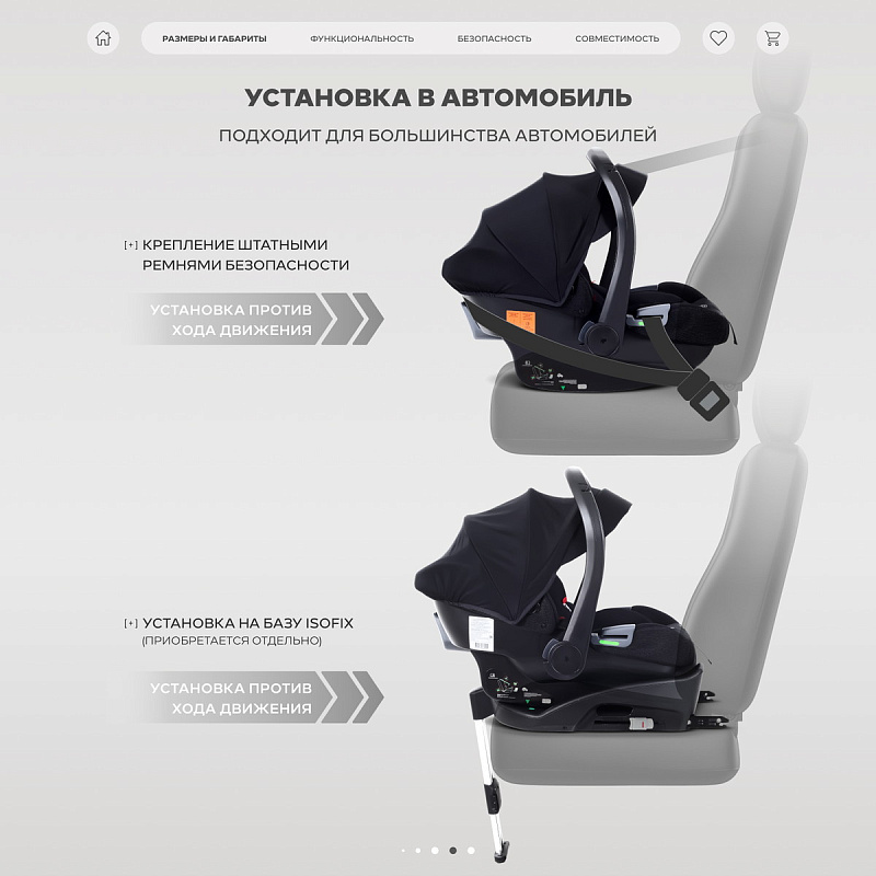 для надежной фиксации автолюльки дополнительно можно приобрести базу isofix с телескопической опорной ногой, увеличивающей устойчивость
