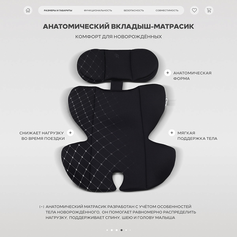 анатомическое сиденье с мягкими вкладышами обеспечит особую защиту и идеальное положение шеи малыша