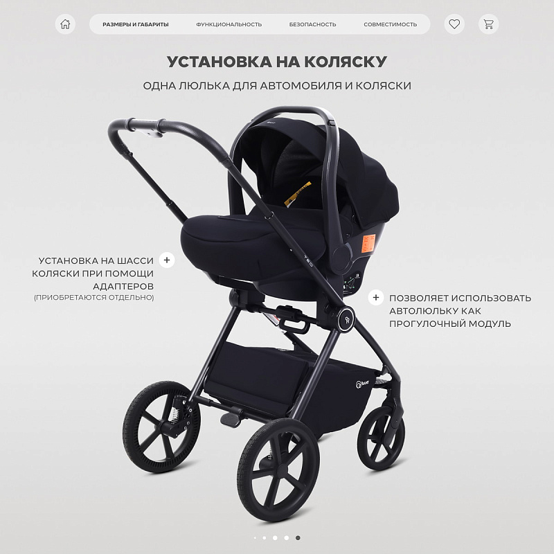 Удерживающее устройство Carry - синоним особой заботы, ведь автолюльку можно установить как на базу isofix (приобретается отдельно), так и на каркас коляски (с использованием адаптеров).